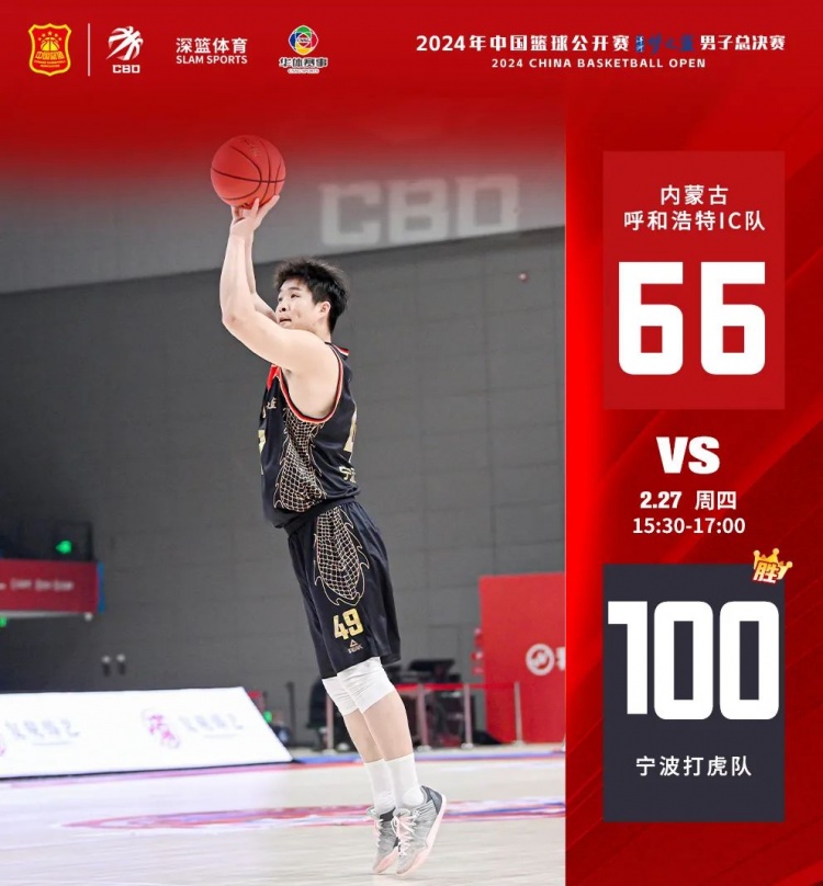 上半場,寧波打虎一開場就展現(xiàn)了超強的得分能力,以16-5領先。內(nèi)蒙古IC通過外線連續(xù)三分,不斷追分。但在快攻的情況下,內(nèi)蒙古IC失誤增多,且命中率下降。半場結(jié)束,寧波打虎50-26領先內(nèi)蒙古IC。下半場,兩隊之間的實力差距愈發(fā)明顯,寧波打虎最終以100-66戰(zhàn)勝內(nèi)蒙古IC。