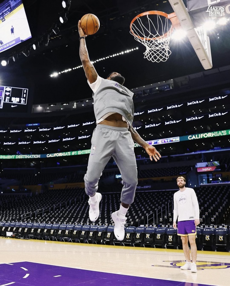 沖擊50000分!湖人官方曬詹姆斯賽前熱身照 飛身扣籃+俏皮做鬼臉