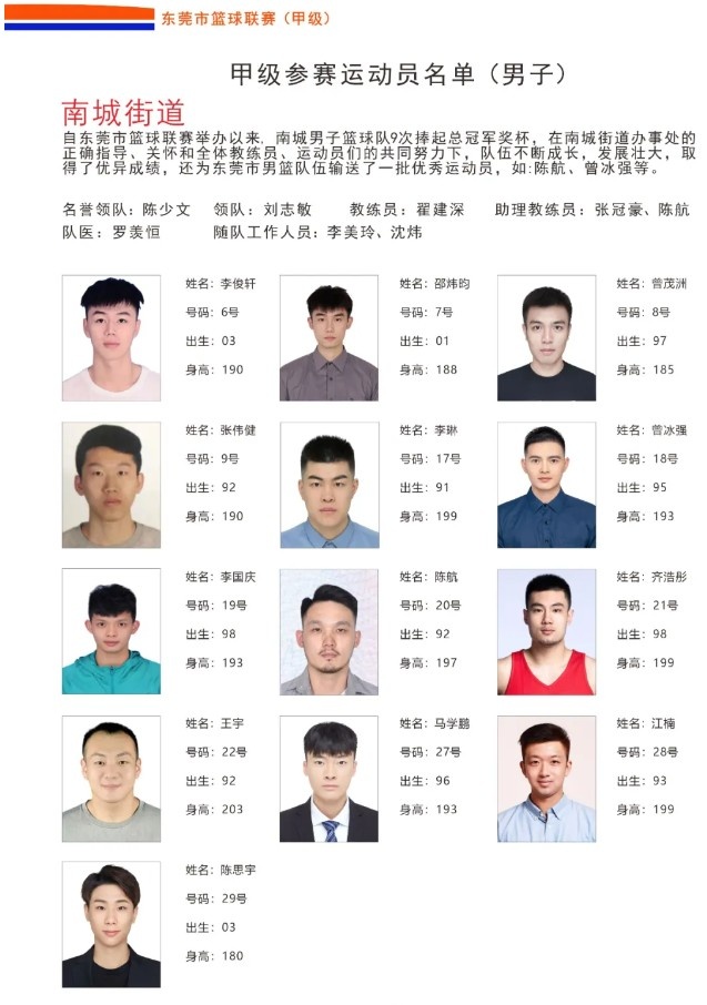 東莞市籃球聯(lián)賽將于4月7日正式開賽,詳細運動員名單如下: