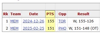 據(jù)統(tǒng)計,162分是本賽季球隊單場得分的新高,此前紀錄是灰熊的155分。2024年12月27日,灰熊155-126大勝猛龍。