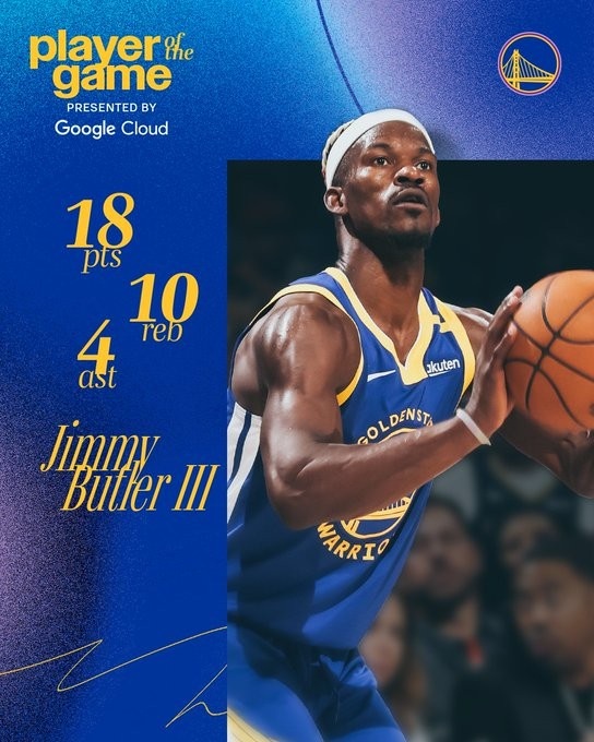 賽后勇士官方發(fā)布數據海報,將巴特勒評為本場最佳球員。