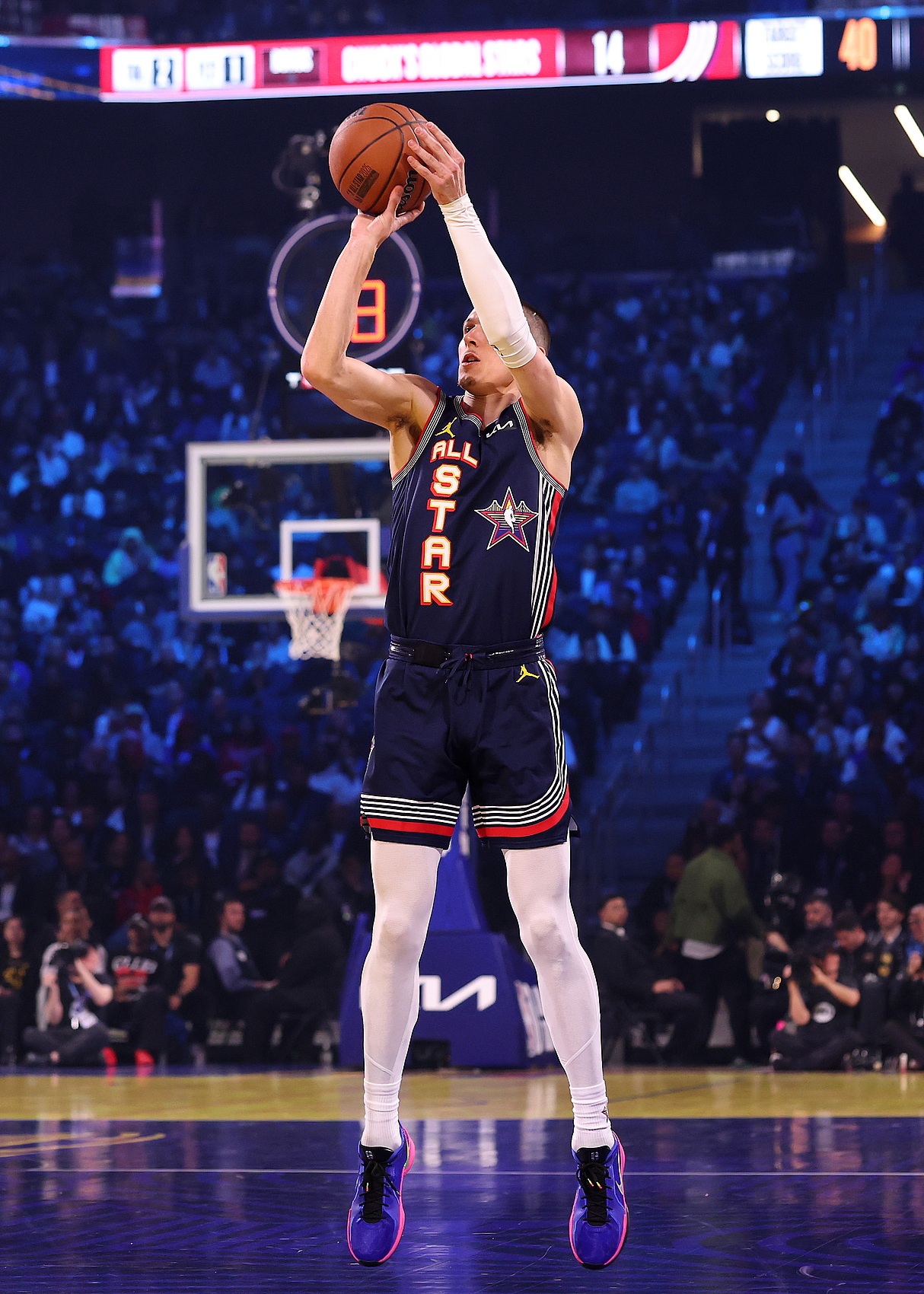 克拉姆:我同意邦當(dāng)?shù)挠^點(diǎn),今年沒有人可能打破這一趨勢,因?yàn)樵摢?jiǎng)項(xiàng)的熱門候選人——普理查德、馬利克-比斯利和被低估的泰-杰羅姆——都不太可能在任何時(shí)候成為全明星。所以我將作弊并選擇拉塞爾-威斯布魯克,作為掘金隊(duì)中一位高效的第六人,他有充分的理由獲得投票者的考慮,而且他可能會(huì)在他生涯的最后一個(gè)賽季中獲得榮譽(yù)全明星的席位,就像德克-諾維茨基和德維恩-韋德一樣。