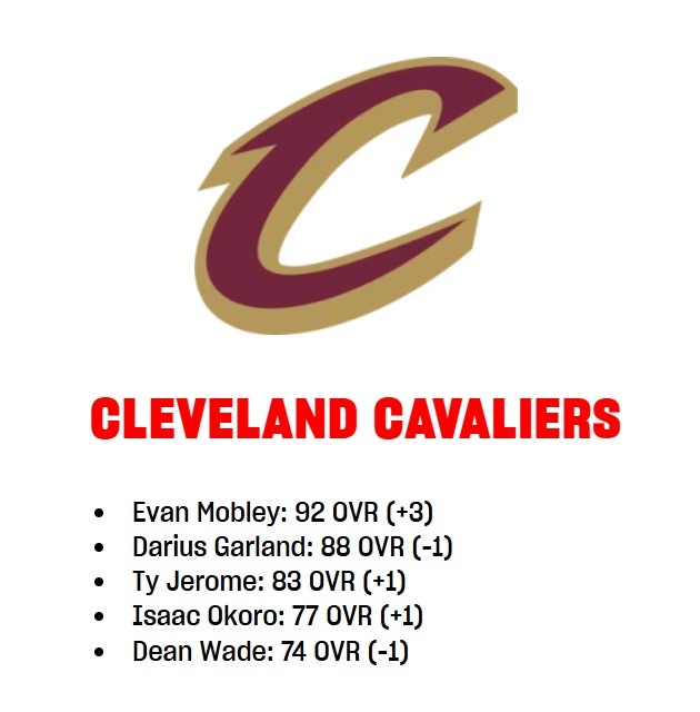3月7日訊 NBA2K官方更新了各隊(duì)球員的能力值,騎士球員變化情況如下: