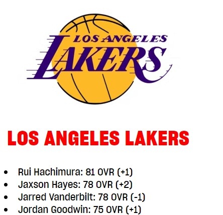 湖人球員2K能力值更新:海斯+2至78 八村&古德溫+1 范德彪-1