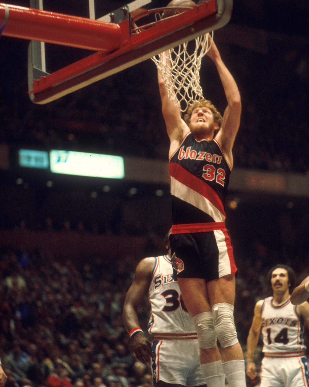 至少在比爾-沃頓的雙腳傷病徹底毀了他的職業(yè)生涯之前,開拓者在1977年憑借他的出色表現(xiàn)奪得了總冠軍。從某種意義上說,有人可能會認(rèn)為,沃頓帶領(lǐng)開拓者戰(zhàn)勝“J博士”歐文率領(lǐng)的76人這一事實(shí),讓他比恩比德更“出色”。但這并不能改變另一個(gè)事實(shí),那就是沃頓因?yàn)閭∪毕苏膫€(gè)賽季,在他出戰(zhàn)的10個(gè)賽季中,有9個(gè)賽季出戰(zhàn)場次不超過67場。
