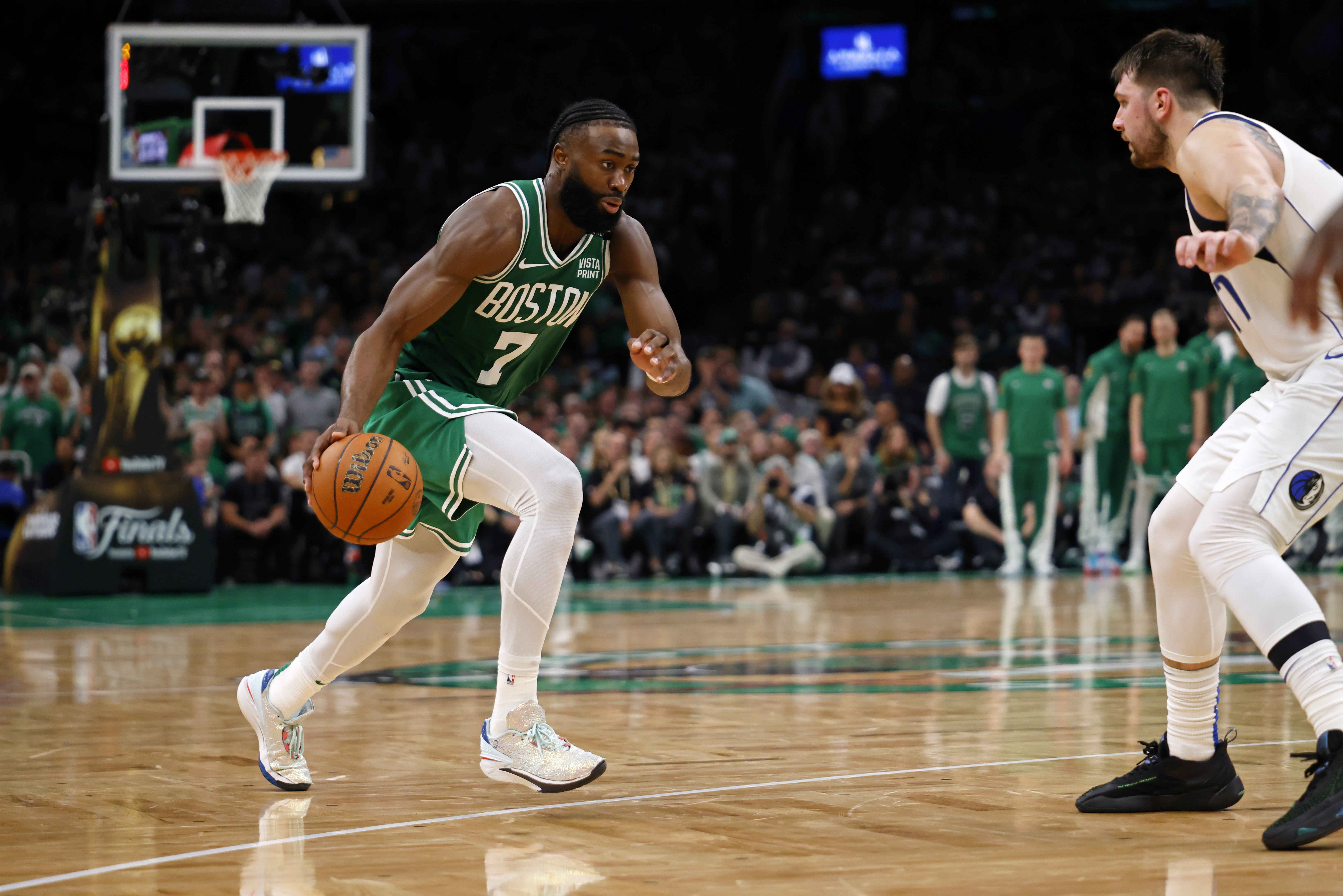 有一段時間,東契奇的表現(xiàn)仿佛重現(xiàn)了去年總決賽的場景(對凱爾特人隊而言或許并不遙遠(yuǎn))。凱爾特人隊早早對東契奇實(shí)施包夾,而布朗則在防守端成為核心——不斷搶斷發(fā)起快攻暴扣,并在進(jìn)攻端消耗東契奇的體力。
