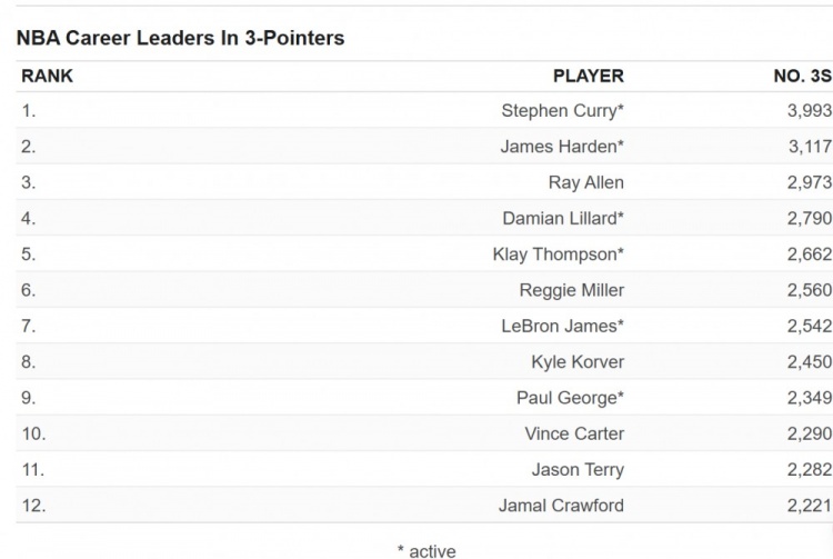 在斯蒂芬-庫里橫空出世之前,職業(yè)生涯投進(jìn)3000記三分球似乎是一個(gè)遙不可及的目標(biāo)。
