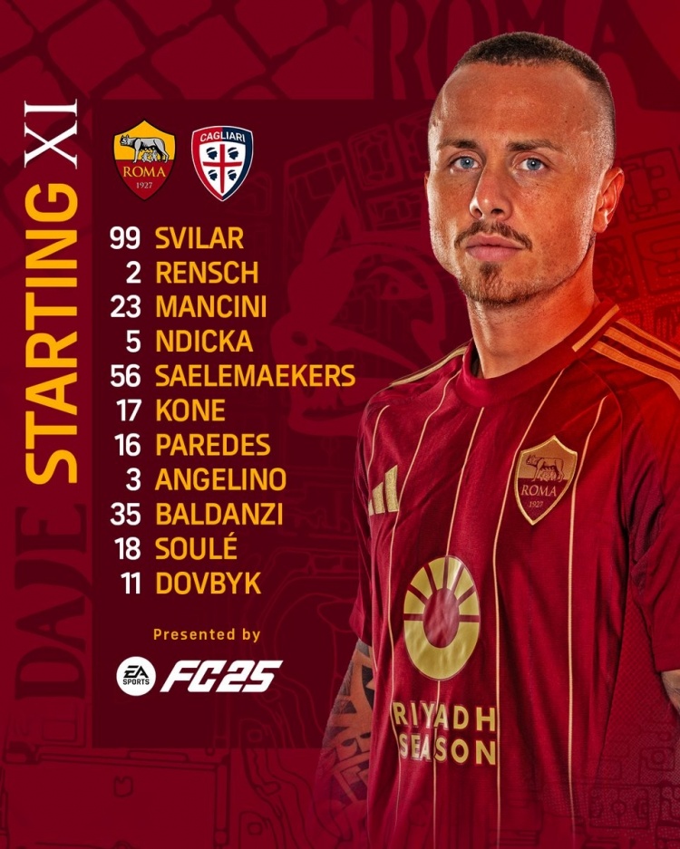 3月16日訊 本輪意甲聯(lián)賽,羅馬將在主場對陣卡利亞里。雙方首發(fā)已出,具體如下: