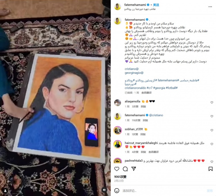 外媒:伊朗一畫(huà)家希望向C羅贈(zèng)送禮物,她為喬治娜準(zhǔn)備了畫(huà)作