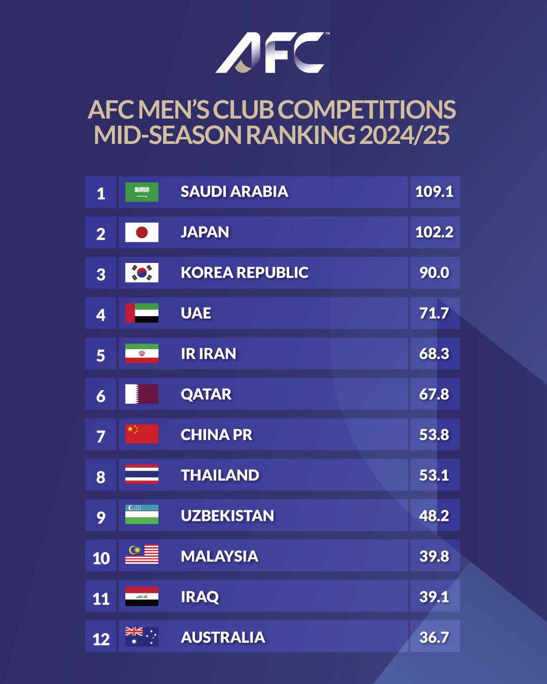 03月04日訊 亞冠精英聯(lián)賽賽前,亞足聯(lián)公布了季中各國聯(lián)賽積分,中超被泰超追分,僅領(lǐng)先0.7分。