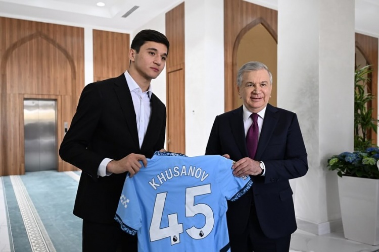 在會見中,胡桑諾夫向米爾濟(jì)約耶夫贈送了自己在曼城的45號簽名球衣。