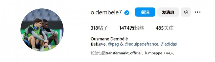 登貝萊已經(jīng)將他的社媒頭像換成和加維的合影,兩人在巴薩有過共事經(jīng)歷。本賽季,登貝萊為巴黎出戰(zhàn)37次打進30球。
