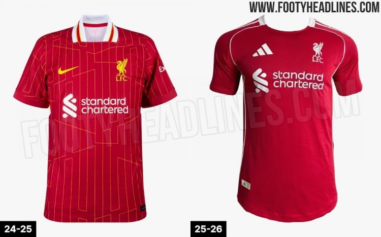 利物浦本賽季主場球衣與下賽季主場球衣對比: