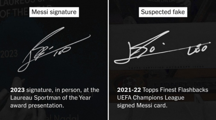 3月27日訊 The Athletic深度報(bào)道了一件涉及梅西簽名球星卡被指為“假簽名”的事件,引發(fā)了收藏界對于球星簽名真?zhèn)蔚馁|(zhì)疑。