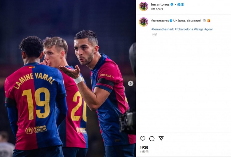 費(fèi)蘭-托雷斯在此前多次表示自己很崇尚自信而貪婪的“鯊魚精神”,他本賽季各項(xiàng)賽事為巴薩33場(chǎng)貢獻(xiàn)14球3助攻。