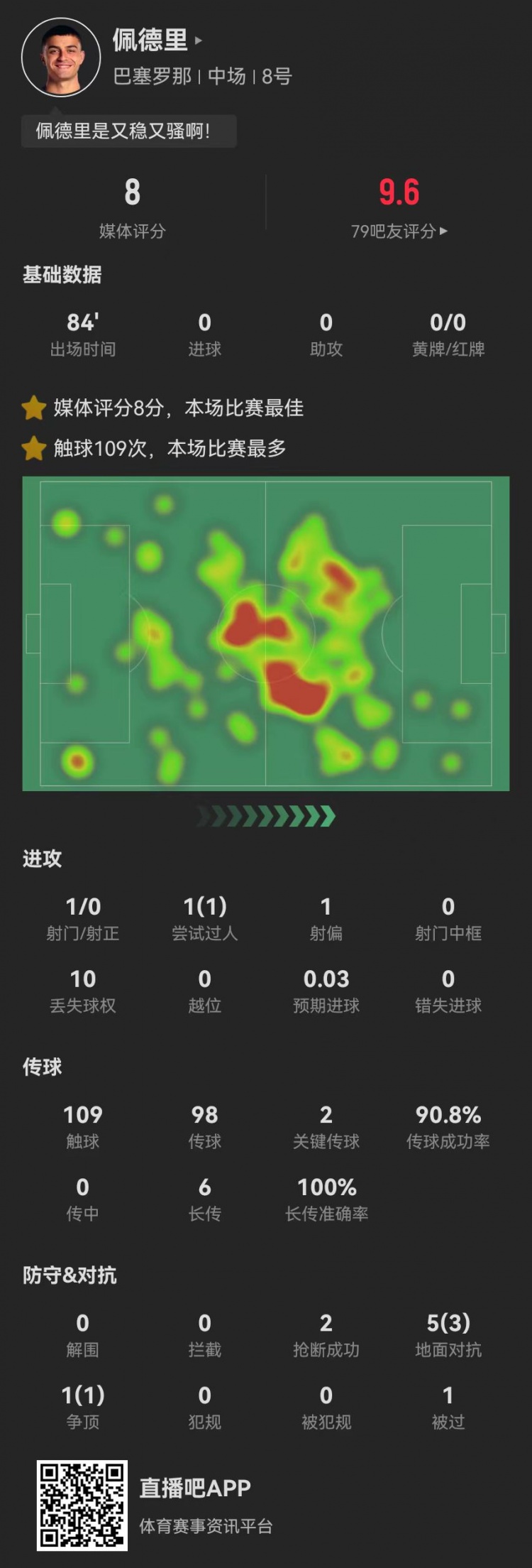 - 當(dāng)選西甲官方全場(chǎng)最佳!佩德里本場(chǎng)2關(guān)鍵傳球+6長(zhǎng)傳6成功+2搶斷
