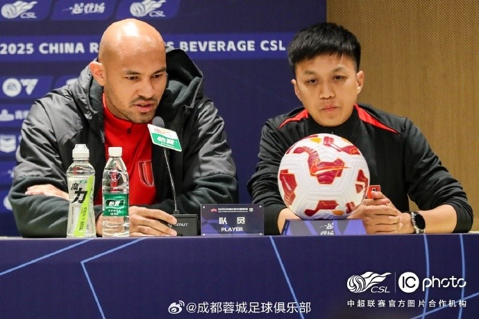 3月28日下午,成都蓉城隊(duì)主教練徐正源和隊(duì)員費(fèi)利佩出席了2025賽季中超聯(lián)賽第3輪客場對陣北京國安的賽前新聞發(fā)布會。