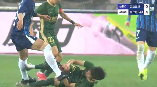 03月28日訊 中超第3輪,武漢三鎮(zhèn)vs浙江。比賽第47分鐘,鄭凱木從身后別倒王鈺棟,同時在王鈺棟倒地后,鄭凱木落地正好踩中王鈺棟腳踝,王鈺棟痛苦倒地。