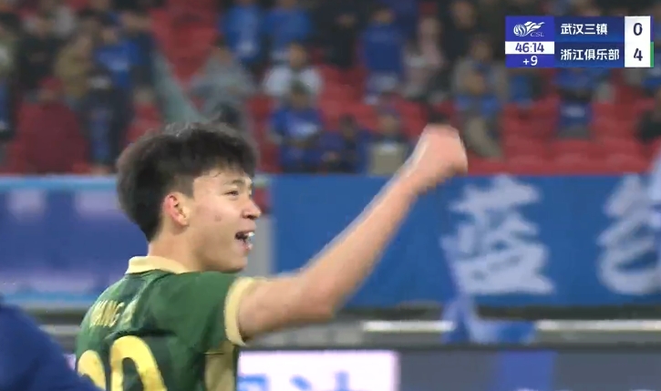 18歲王鈺棟中超處子球!三鎮(zhèn)后防白給,浙江半場4-0領(lǐng)先