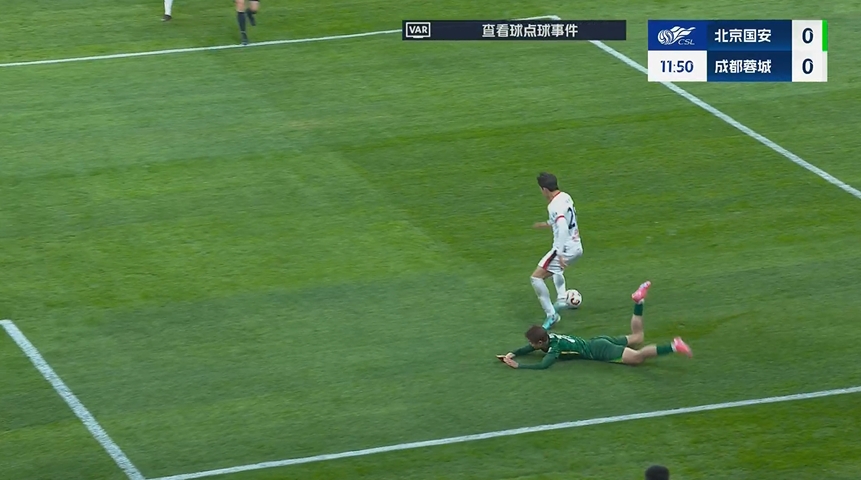 比賽第11分鐘,楊立瑜突破至禁區(qū)內(nèi)摔倒,馬寧果斷判罰點(diǎn)球!隨后VAR介入,馬寧去場(chǎng)邊查看后維持點(diǎn)球判罰。第18分鐘法比奧點(diǎn)射破門,國(guó)安1-0領(lǐng)先蓉城。