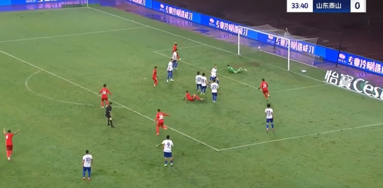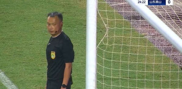 第25分鐘,山東泰山的球網(wǎng)出現(xiàn)問題,比賽因此暫停一小會。↓