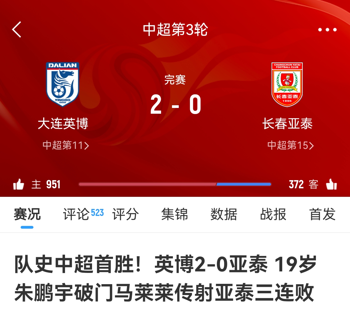 - 中超第3輪,中澳戰(zhàn)23人僅王鈺棟進(jìn)球,拜合拉木吃直紅&3人未出場(chǎng)