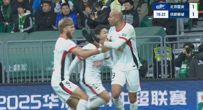 比賽第77分鐘費利佩亂戰(zhàn)破門,蓉城1-1追平國安。