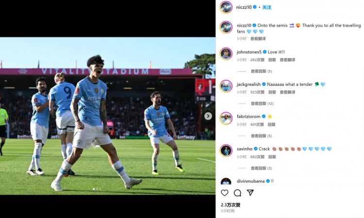 - 兩送助攻!奧賴?yán)麜衽鹫諔c祝,斯通斯&格拉利什等隊友紛紛鼓勵