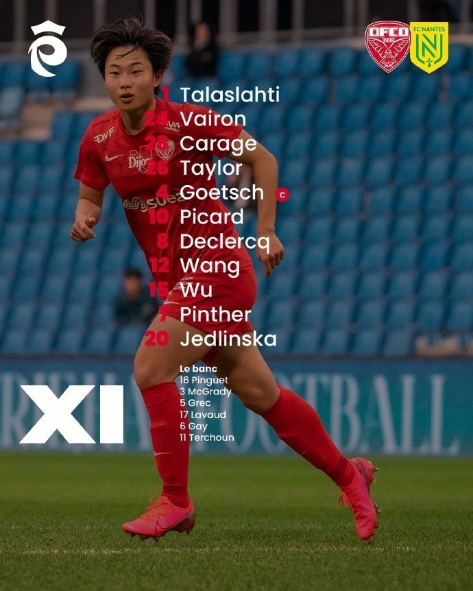 法甲第19輪第戎女足主場(chǎng)3-0戰(zhàn)勝南特女足,吳澄舒、王妍雯首發(fā)出場(chǎng),第17分鐘,吳澄舒接隊(duì)友左路傳中,頭球破門,首開紀(jì)錄,連續(xù)兩場(chǎng)有進(jìn)球入賬。上輪聯(lián)賽第戎客場(chǎng)2-0戰(zhàn)勝勒阿弗爾女足,吳澄舒也斬獲一粒進(jìn)球。王妍雯打滿90分鐘,傷停補(bǔ)時(shí)階段被隊(duì)友換下。