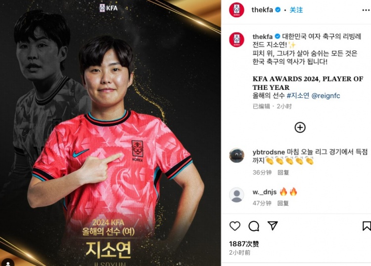 - 官方:34歲韓國女足名將池笑然當(dāng)選韓足協(xié)2024年度最佳女足球員