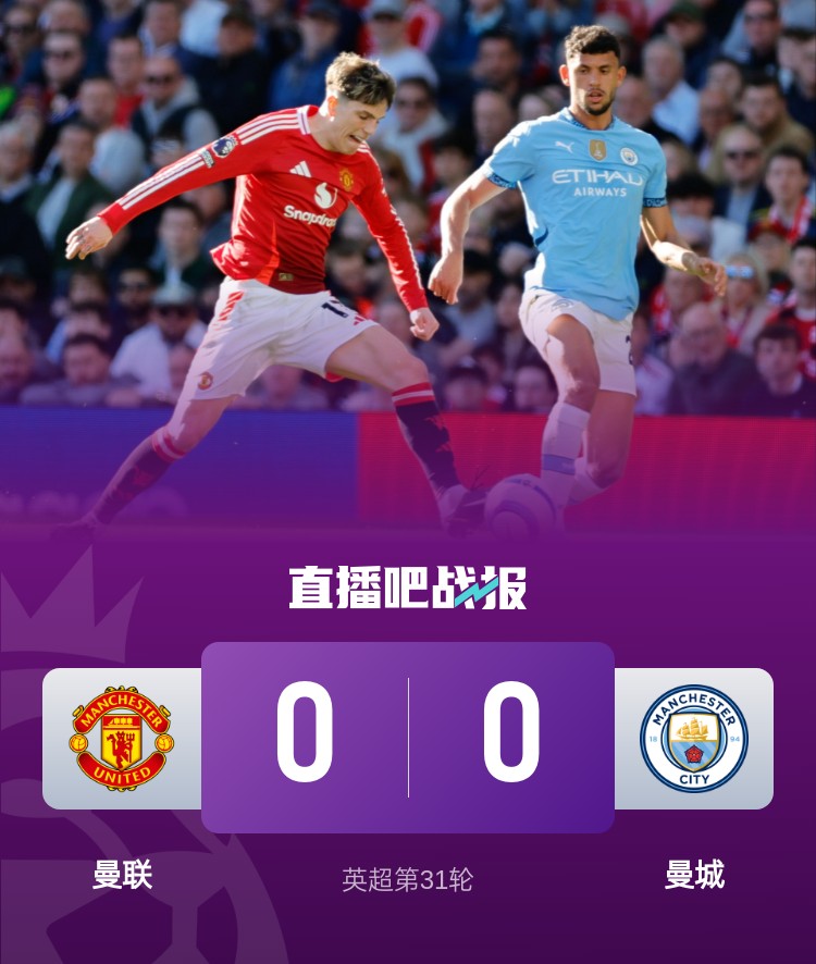 04月07日訊 英超第31輪,曼聯(lián)0-0戰(zhàn)平曼城,曼市德比4場不敗。