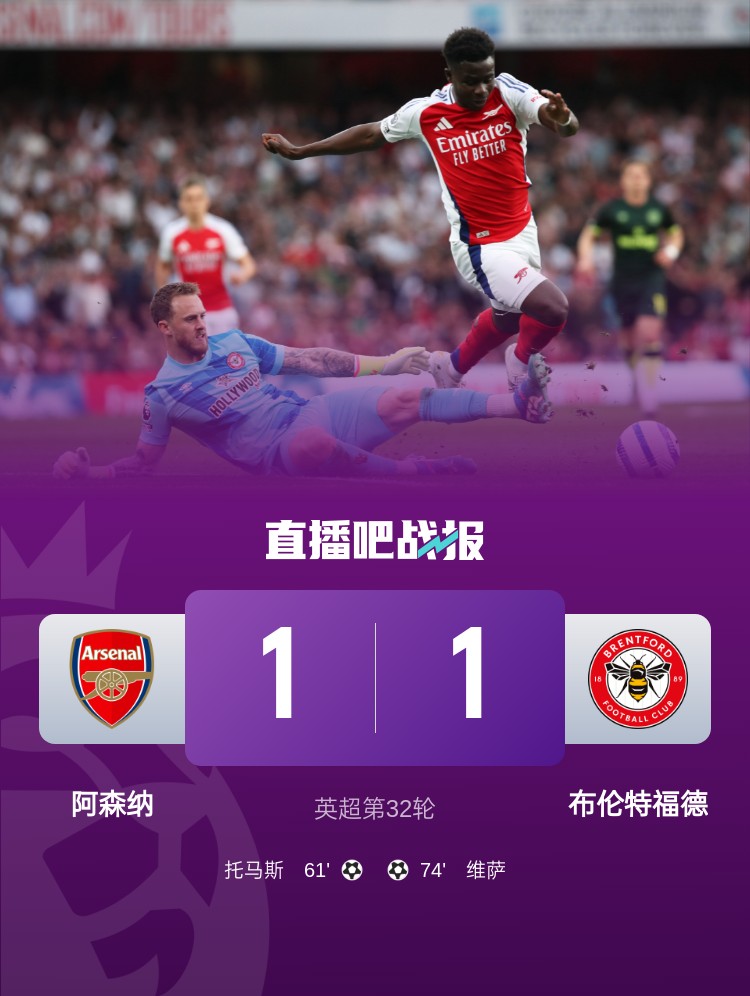 早報:阿森納1-1布倫特福德,利物浦再拿9分即鎖定冠軍