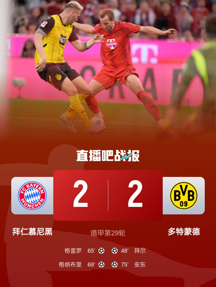 前二雙雙戰(zhàn)平!德甲積分榜:拜仁還剩5輪仍6分優(yōu)勢領跑