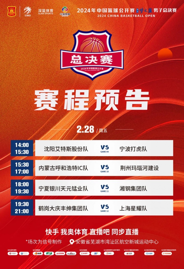 2月27日,2024年中國籃球公開賽洋河夢之藍男子總決賽進入到第二個比賽日。在本輪比賽中,湘鋼集團、寧波打虎、艾特斯股份、寧夏天元錳業(yè)獲勝。