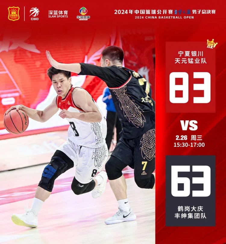 上半場(chǎng),寧夏天元錳業(yè)一波7-0開(kāi)局,打停大慶豐紳集團(tuán)。暫停回來(lái),寧夏天元錳業(yè)在搶到后場(chǎng)籃板后,積極組織快攻,11-1寧夏天元錳業(yè)領(lǐng)先。隨后大慶豐紳集團(tuán)增強(qiáng)防守,同時(shí)手感開(kāi)始回暖,但寧夏天元錳業(yè)在前后場(chǎng)籃板和進(jìn)攻上發(fā)揮的更加出色。半場(chǎng)結(jié)束,寧夏天元錳業(yè)44-24大慶豐紳集團(tuán)。下半場(chǎng),寧夏天元錳業(yè)繼續(xù)保持進(jìn)攻勢(shì)頭,最終天元錳業(yè)83-63大慶豐紳集團(tuán)。