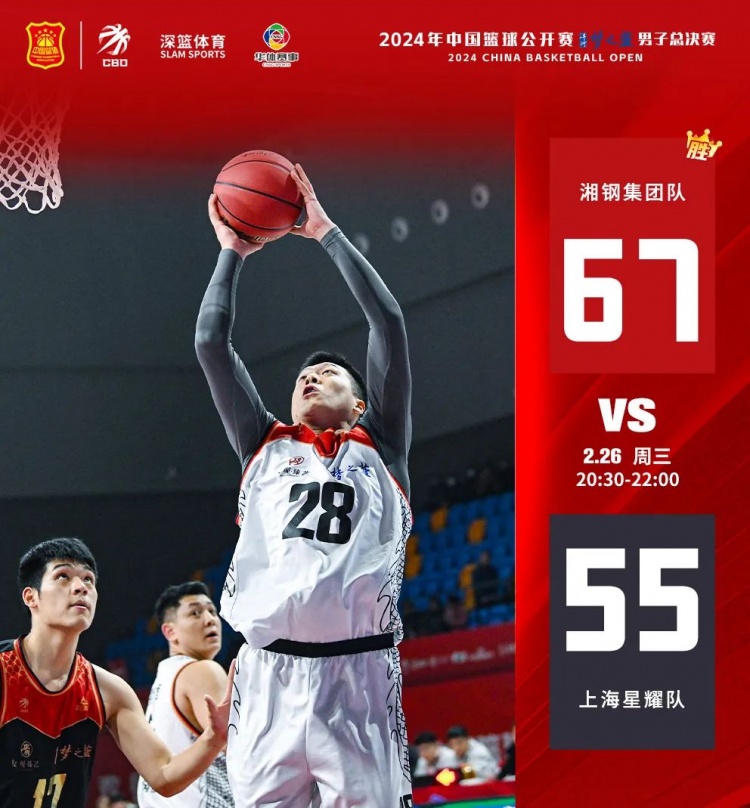 上半場(chǎng)開(kāi)始,湘鋼集團(tuán)進(jìn)攻十分強(qiáng)勢(shì),取得9-4領(lǐng)先。26號(hào)陳雙、28號(hào)蔡士港相繼投籃命中,上海星耀出現(xiàn)失誤,首節(jié)湘鋼集團(tuán)24-11領(lǐng)先上海星耀。次節(jié),上海星耀加強(qiáng)防守并在籃板的拼搶中更積極主動(dòng)。但湘鋼集團(tuán)沒(méi)有給其太多機(jī)會(huì),半場(chǎng)結(jié)束,湘鋼集團(tuán)領(lǐng)先上海星耀16分。下半場(chǎng),兩隊(duì)沒(méi)有拉開(kāi)太大分差,依靠上半場(chǎng)的領(lǐng)先優(yōu)勢(shì),湘鋼集團(tuán)以67-55戰(zhàn)勝上海星耀。