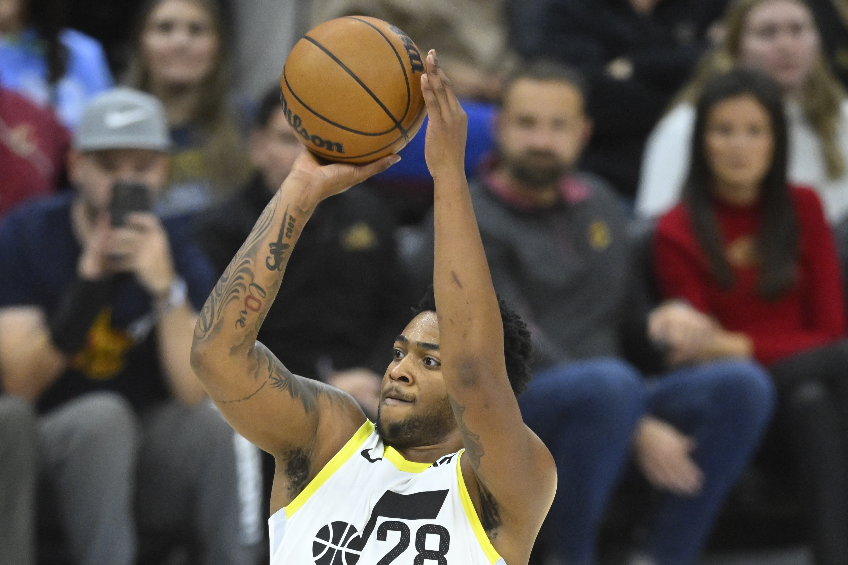 上半場,爵士兩名替補森薩博和基昂特-喬治高效發(fā)揮,森薩博12分鐘三分4投4中,拿到12分2籃板,正負(fù)值+1;