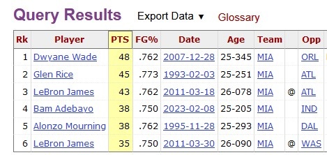- 希羅成熱火隊(duì)史單場(chǎng)砍至少35分且命中率75%+最年輕球員 力壓詹韋