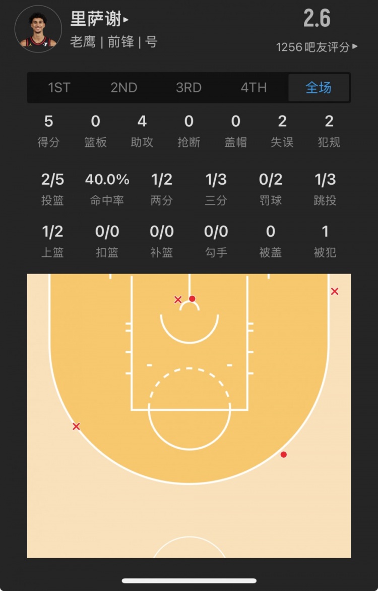 老鷹狀元秀 扎卡里-里薩謝 登場(chǎng)25.6分鐘