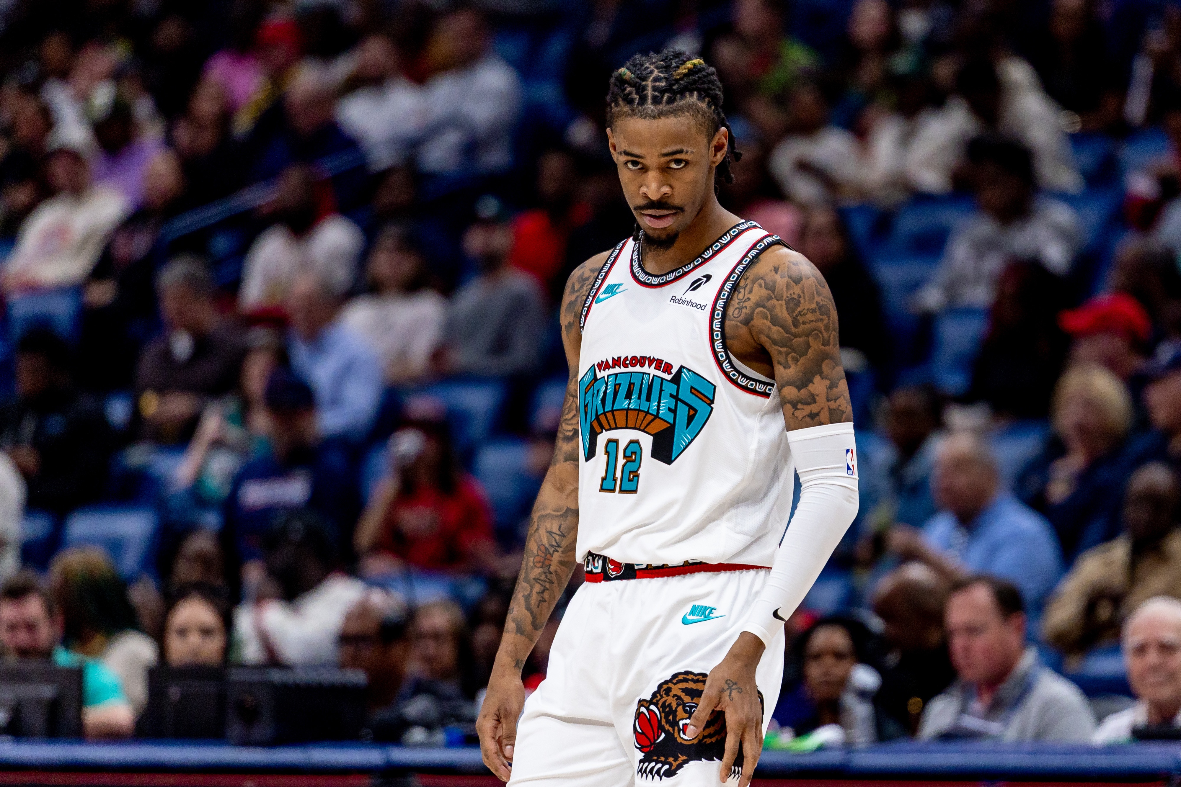 莫蘭特188公分、78公斤,本季至今場均三分球命中率29.1%。體型小防守天然受限,遠射不好被放空,這也決定了他在場時對防守和空間確實有負面影響,打法比較粘球,在他上半場陣地戰(zhàn)持球想要一個人硬解湖人四人收縮陣型的進攻回合堪稱是灰熊的災(zāi)難。