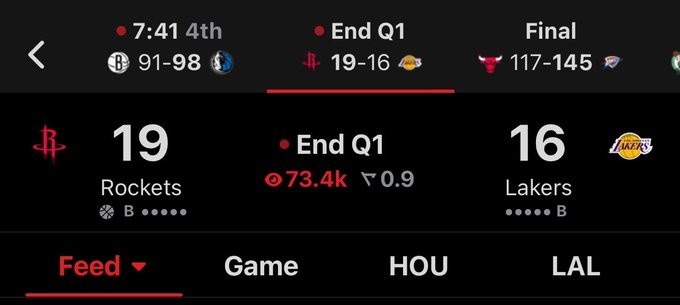 - 防守大戰(zhàn)!湖人火箭兩隊前一場比賽合砍282分 今天首節(jié)合計35分