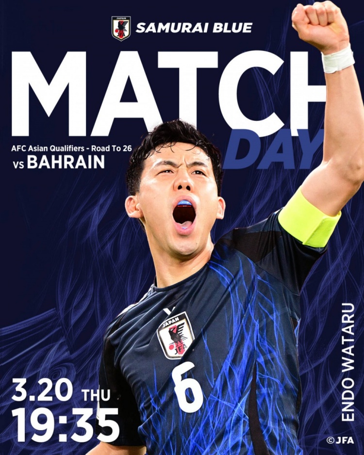 今日日本國家隊官推公布了本場比賽的海報,隊長遠藤航獨自入鏡,海報中他振臂高呼,志在為球隊帶來勝利。日本隊官推為海報配文寫道:“目標(biāo)是連續(xù)出戰(zhàn)8屆世界杯,讓我們朝著這個目標(biāo),與藍武士并肩作戰(zhàn)吧!”