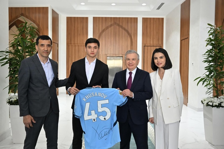 在會見中,胡桑諾夫向米爾濟(jì)約耶夫贈送了自己在曼城的45號簽名球衣。