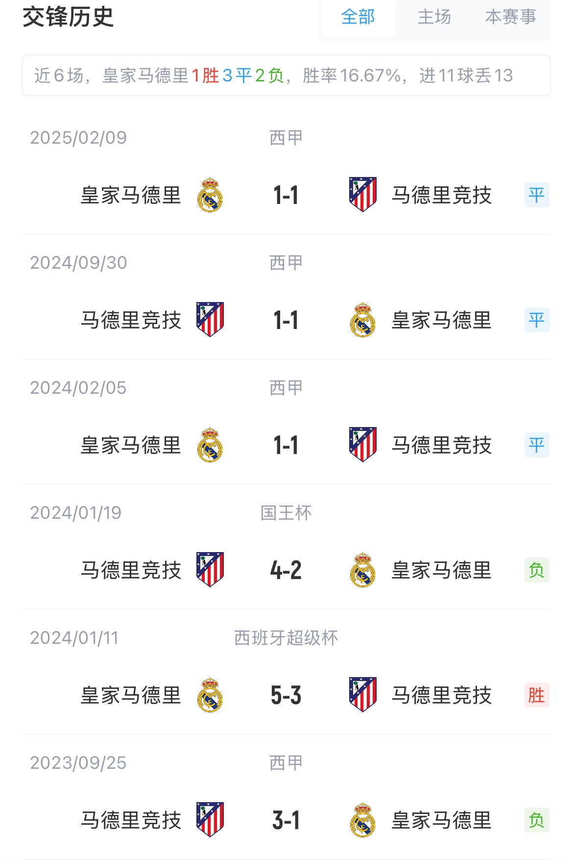 皇馬與馬競在歐戰(zhàn)共交手10次,皇馬5勝2平3負(fù),其中兩次在歐冠決賽戰(zhàn)勝馬競。本賽季,兩隊(duì)在西甲的兩次對(duì)決均戰(zhàn)成1-1。