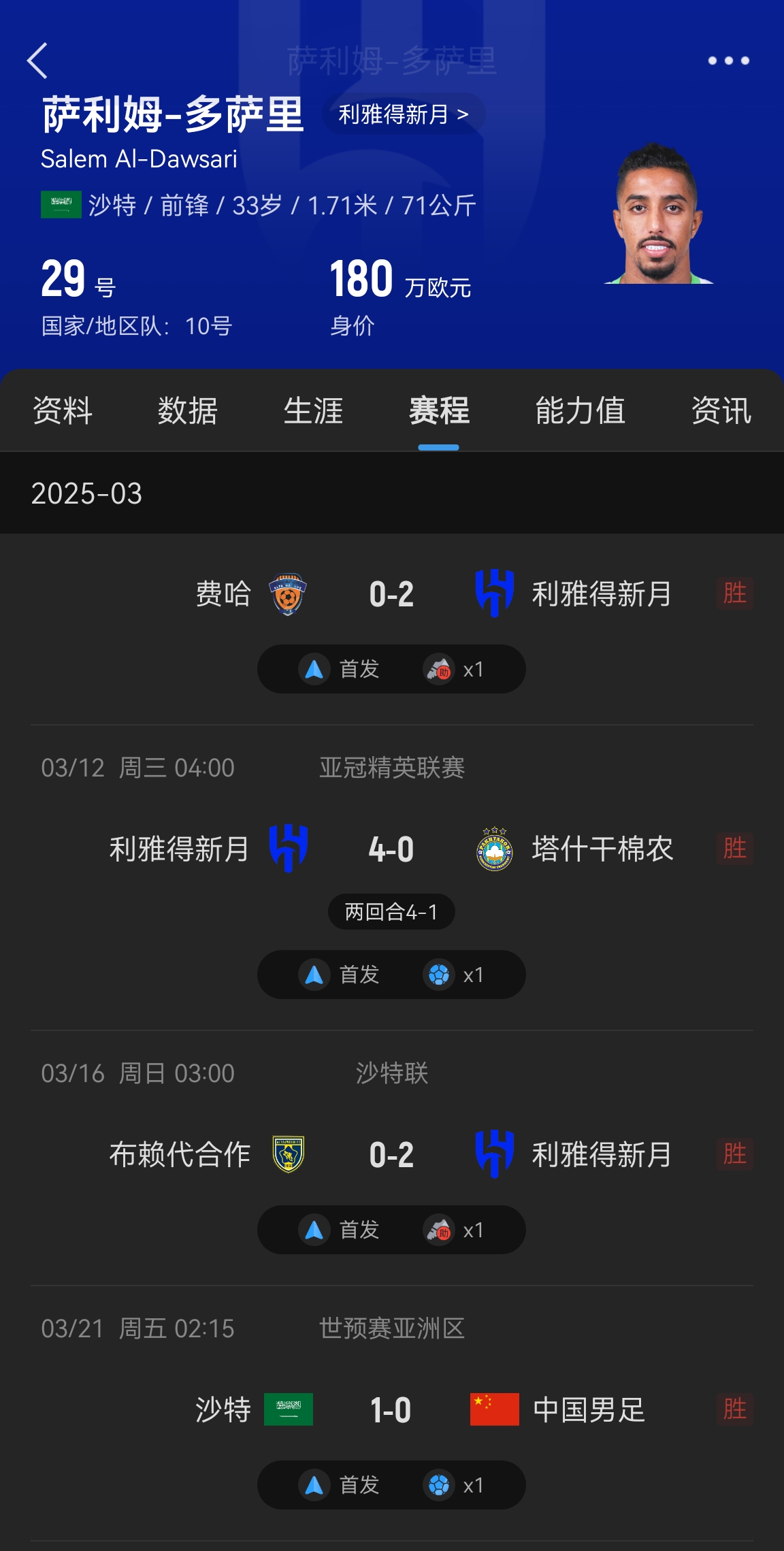 沙特隊長多薩里3月16日在沙特聯(lián)打滿全場,3月21日對國足打入制勝球