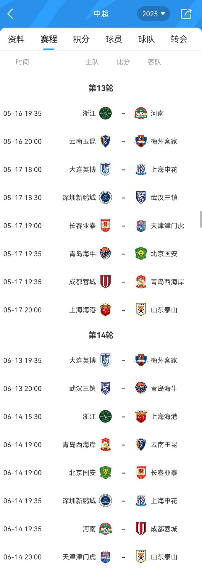 查詢中超賽程可以發(fā)現(xiàn),今年6月國足最后兩場世預(yù)賽期間,中超聯(lián)賽將再次進(jìn)行為期1個月的“讓路”。