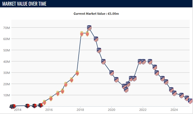 血虧?29歲勒馬爾今夏恐遭清洗,馬競18年花7200萬&現(xiàn)身價僅500萬