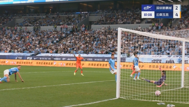 - 玉昆4-2領(lǐng)先新鵬城!杜加利奇冒頂,徐宏杰得球抽射破門