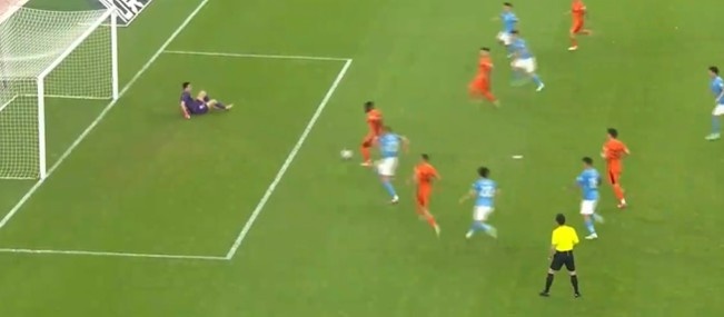 - 任航送點(diǎn),布彭扎點(diǎn)球被撲,錯(cuò)失帽子戲法,浙江4-0領(lǐng)先三鎮(zhèn)