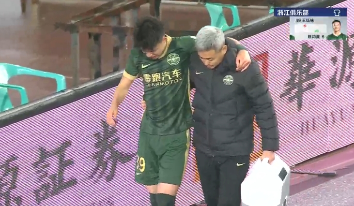 隨后隊醫(yī)進場簡單治療,擔架進場將王鈺棟抬離球場。最終王鈺棟無法堅持,被姚均晟換下。